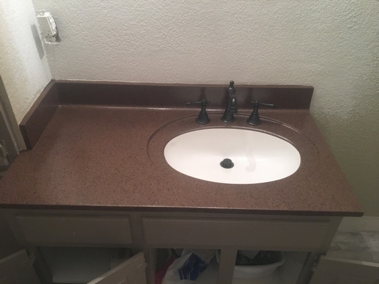 Most vanities we see are cultured marble. We also see tile vanities and the occasional laminate and we successfully refinish them all. Because we don’t rip anything out of your living spaces, there’s no possible drywall, floor or plumbing damage to pay for, either. Best of all, you can choose from dozens of finishes to match your current or new decor. Contact us at Fort Worth Refinishing and experience the best in bathroom vanity refinishing