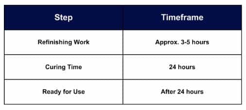 Professionals can complete the entire refinishing process in just a few hours. This includes preparing the surface, making any necessary repairs, and applying the new coating. After the work is done, the new finish needs time to cure. Your bathtub will be ready to use again in as little as 24 hours, meaning you can get back to your routine with almost no interruption.
