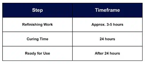 Professionals can complete the entire refinishing process in just a few hours. This includes preparing the surface, making any necessary repairs, and applying the new coating. After the work is done, the new finish needs time to cure. Your bathtub will be ready to use again in as little as 24 hours, meaning you can get back to your routine with almost no interruption.