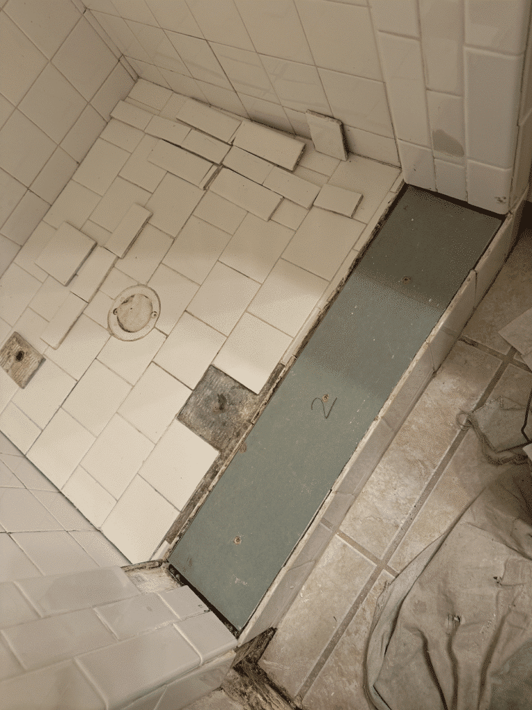 Shower pan problems often begin beneath the surface, where they are difficult for homeowners to detect. Because the waterproof layer sits below the visible shower floor, early damage may develop long before cracks, stains, or leaks appear.